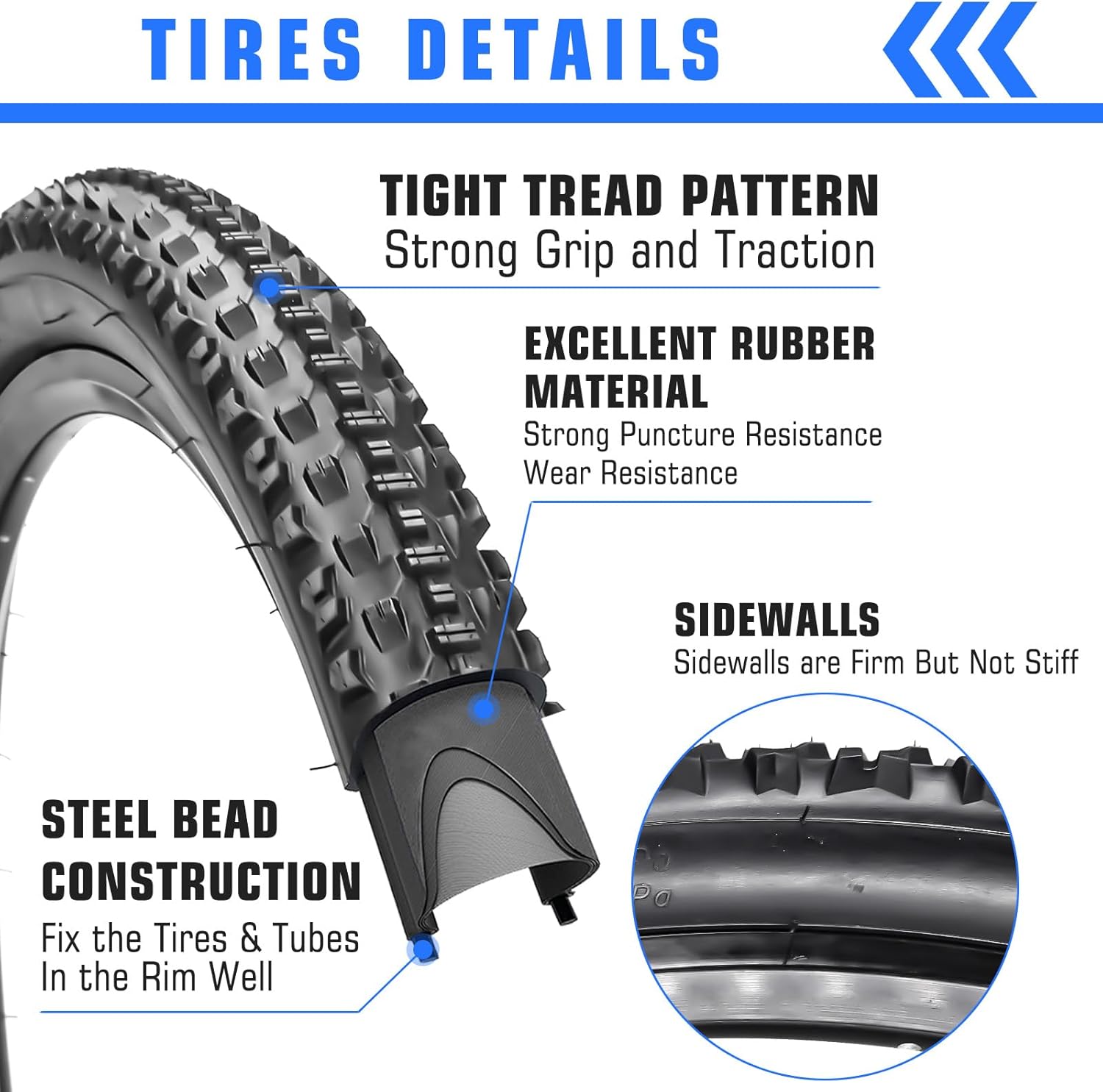 SIMEIQI 2 Pack 26 x 2.10 / 27.5 x 2.10 Bike Tires 26/27.5 inch Folding Bike Tires Fit for 26/27.5 X 1.95 26 X 2.10 26 X 2.125 Mountain Bike Beach Cruiser Bike City Urban Bicycles Bikes