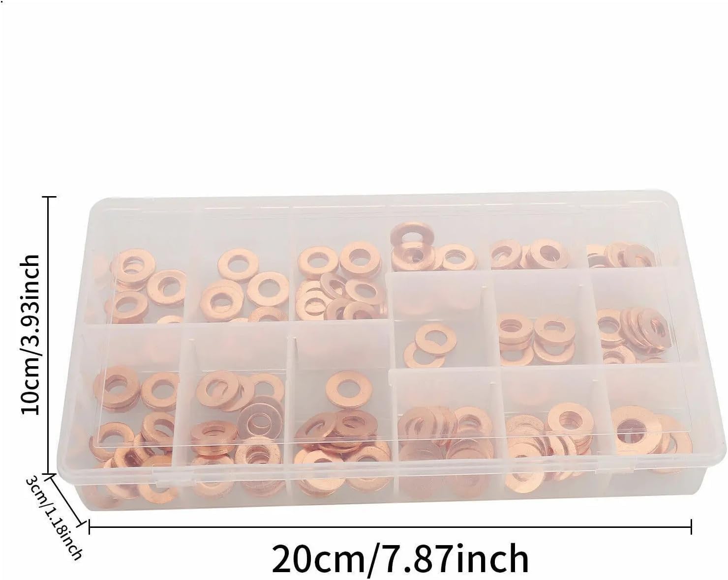 Description:This product is suitable for sink plugs, water, fuel and hydraulic accessories, etc.Suitable for all types of engines, such as cars, ships, generators, machinery and factories.High-quality copper material, good electrical and thermal conductivity.Used to seal fuel injectors on common rail diesel injection systems (CDI).Specification:Size: (I/D x O/D x Depth)M5*9*1 30pcsM6*10*1 30pcsM6*12*1 20pcsM8*12*1 20pcsM8*14*1 20pcsM10*14*1 20pcsM12*16*1 20pcsM12*18*1.5 20pcsM14*18*1 20pcsPackage Includes:200 Pieces Copper Washers1 Piece Box==========Other Part Number : =Placement on Vehicle : =Country/Region of Manufacture : =Interchange Part Number : =Special Features : =Material Type : =Item Weight : =Item Height : =Item Width : =Item Length : =Manufacturer Part Number : =OEM NO. : =Welcome to my shop - your professional upgrade partner for automotive fuel system! We specialise in providing high quality fuel injectors and are committed to creating efficient and reliable engine performance solutions for car owners, garages and tuning enthusiasts worldwide. Let every drop of fuel release more power, and inject lasting vitality into your car's engine!