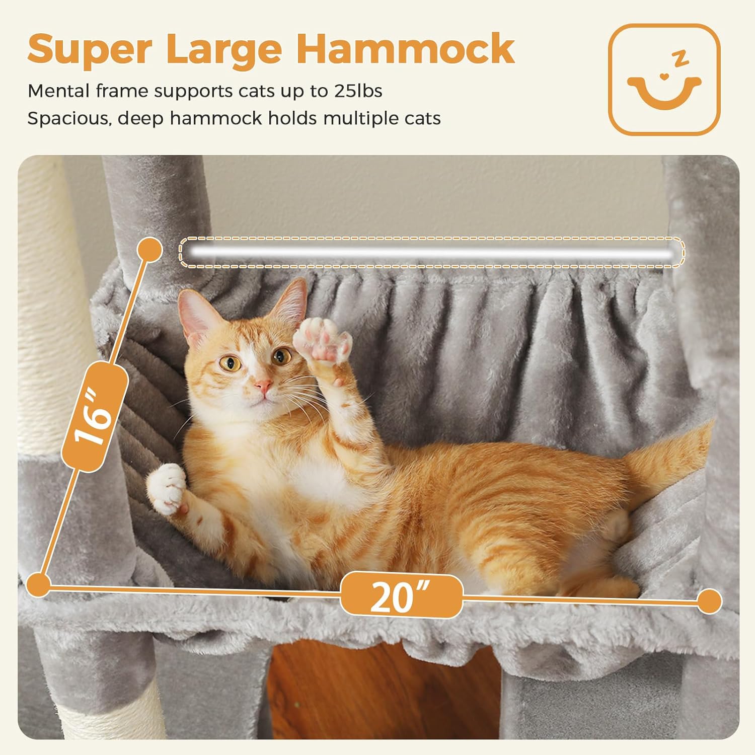 | Other Special Features of the Product | Giant Cat Hammock, Dual Cat Condos, Replaceable Screw Toy, Stable Construction |