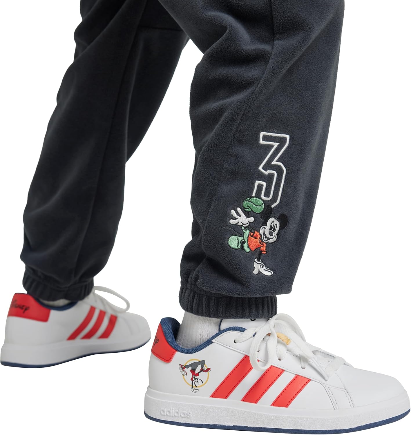 Dress them up in style with these kids' pants from adidas. They're made from durable and comfortable polyester interlock fabric and feature a drawcord on the elastic waist to keep the fit snug. A Disney's Mickey Mouse graphic completes the look.
