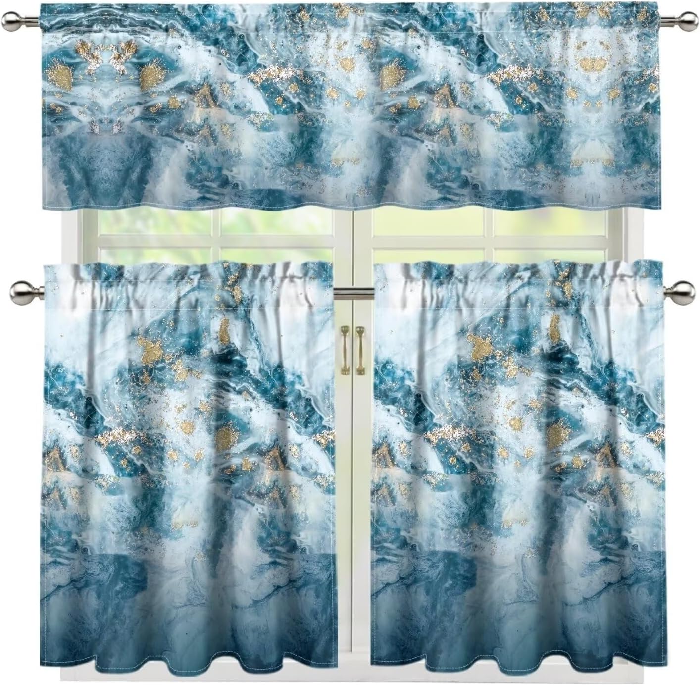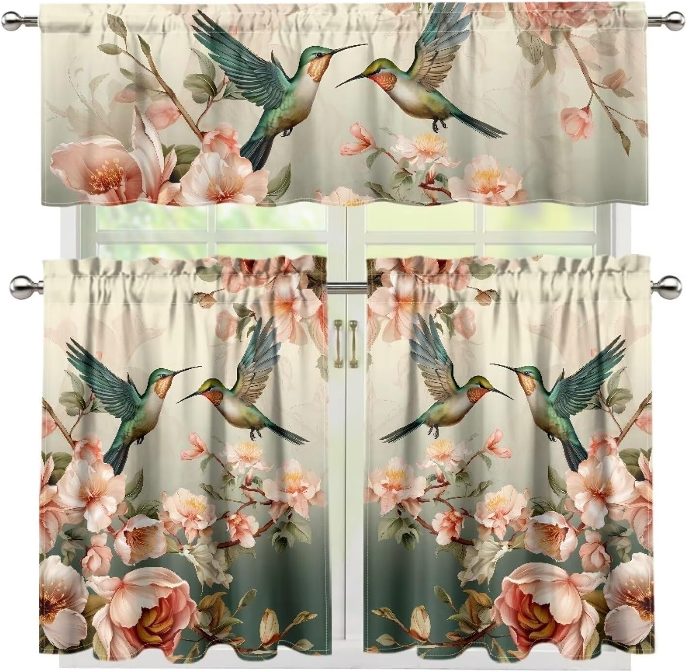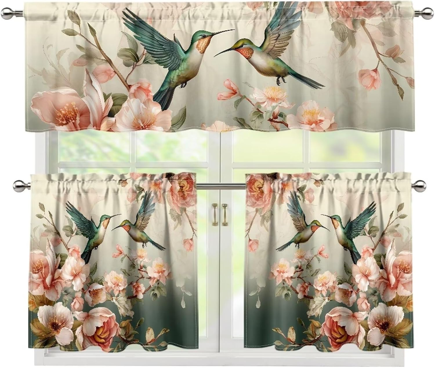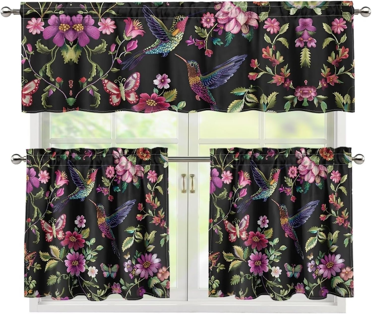 HUISEFOR Kitchen Curtains Valances and Tiers Set -Package Contents: 3-piece kitchen curtain valance each panel includes 1pc 53.9" W x 17.7" L curtain valance panel and 2pcs 27.5"W x 24"L (S) / 27.5"W x 35.8"L (M) short tiers curtain. -Made of high quality polyester.This material is soft to the touch and fade resistant, protect your furniture and floor from being damaged by the sunlight, and protect your privacy. Your space can be kept light and airy while you can enjoy your own activities in the living room without being disturbed by glances. -Easy Installation: The rod pocket is wide enough to fit most curtain rods on the market (Rods not included). It can easily cover your curtain rod, and is easy to install, slide and remove, 3 piece design makes installation and removal more convenient.