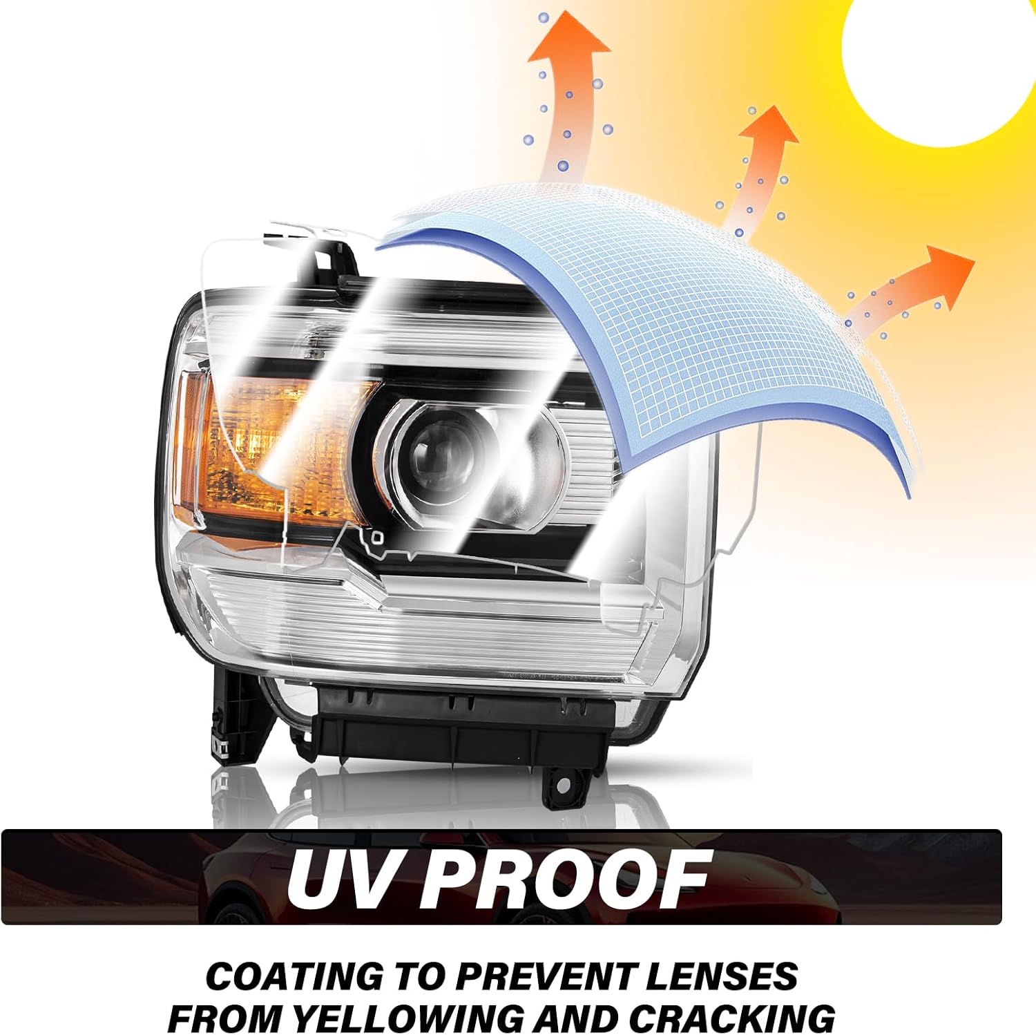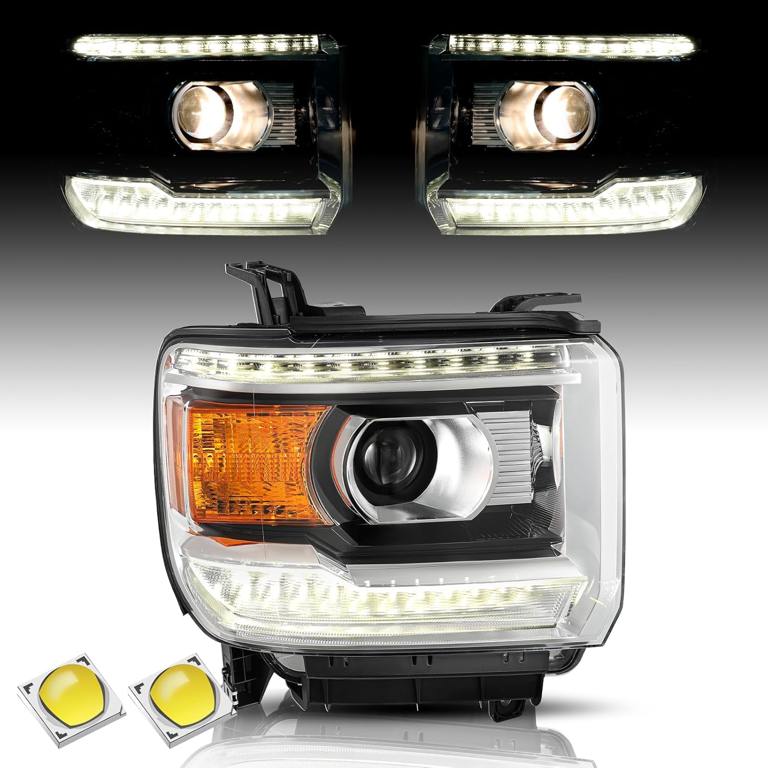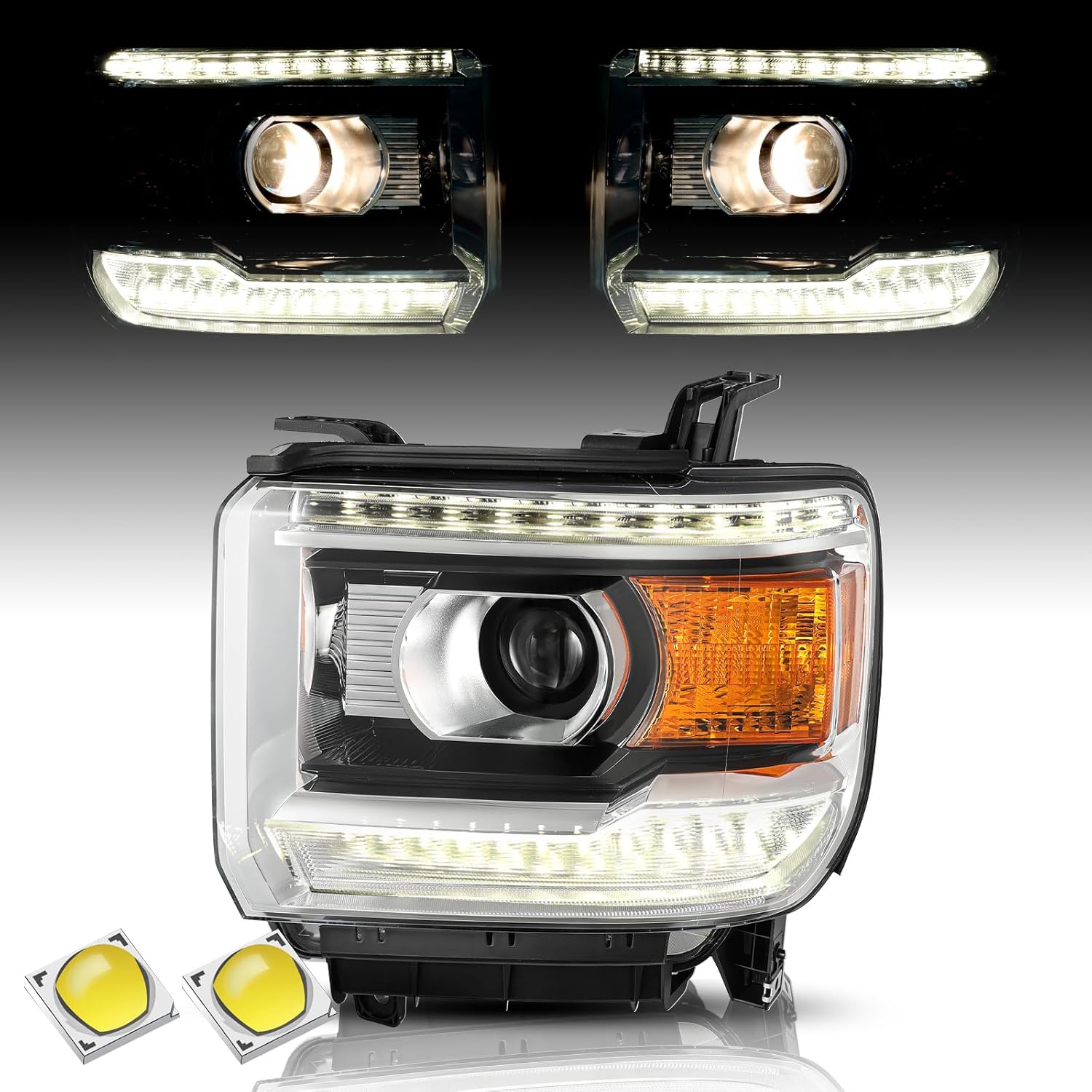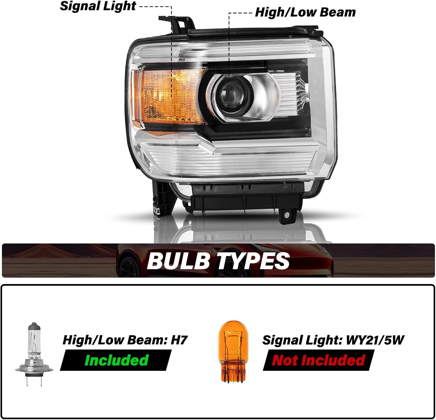 | Compatible with Vehicle Type | Compatible w/ 2014-2018 GMC Sierra 1500 Base/Denali/SLE/SLT models only, Compatible w/ 2015-2019 GMC Sierra 2500HD Base/Denali/SLE/SLT models only, Compatible w/ 2015-2019 GMC Sierra 3500HD Base / Denali / SLE / SLT models only, Not Compatible w/ 2014 Classic Body Style, Not Compatible w/ models w/ factory LED Day Time Running Lights |