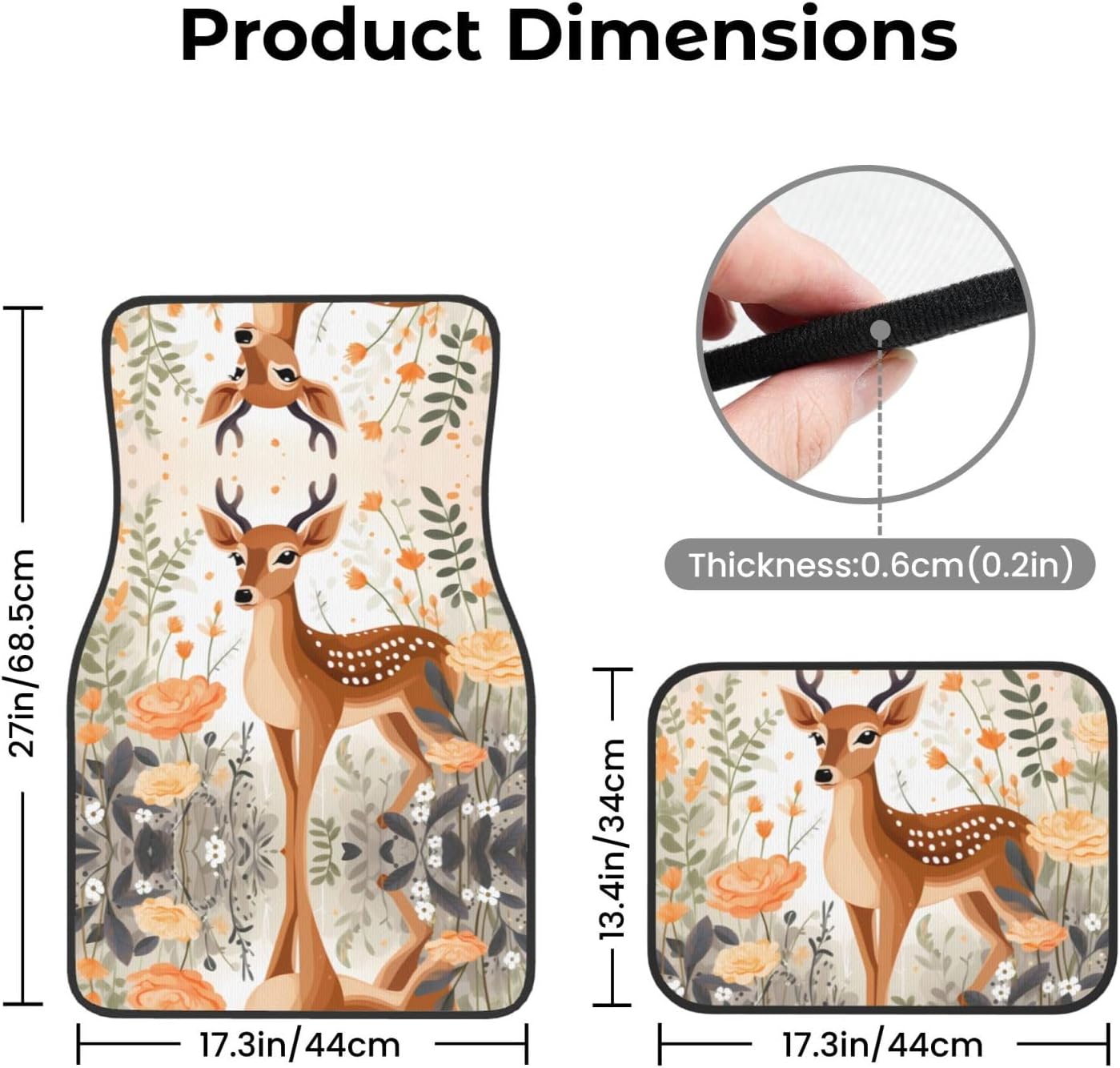 Add a touch of elegance to your car. Our Little Fresh Deer Little Fresh Deer printed car mats are light-resistant and stay colorful even in the hot sun. They are tightly woven, soft and firm to the touch, easy to clean, and can be easily rinsed to remove stains and keep your car clean. The drop-molding process on the bottom not only prevents dust from entering, but also simplifies the installation process. The non-slip design ensures stability in any driving situation, ensuring your safe driving. Suitable for a variety of models, whether it is a car, truck or van, this mat can perfectly blend with your interior style.