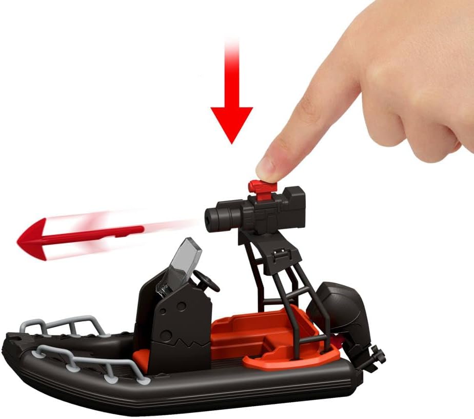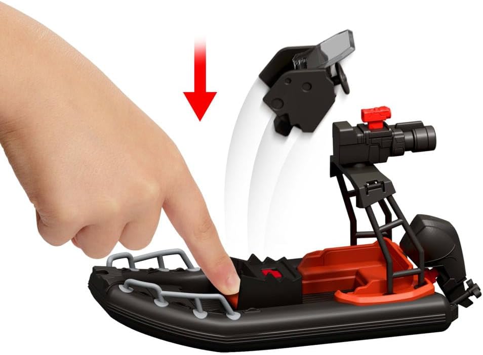 This special Escape from the Island set is directly inspired by the action of Jurassic World - The Rebirth The set includes an inflatable boat, Distortus Rex, Reuben Delgado, Isabella Delgado and a small Aquilops. This is the first time Aquilops has appeared in the Jurassic World lineup The vehicle comes with a blaster with two different bullet options and a removable section to fight and destroy. Accessories enhance creative play. Scan the tracking code on Distortus Rex paw in the free Jurassic World Play app with a compatible smart device (Android or iOS, not included) to unlock a digital version of the dinosaur and play this fun and fierce game by driving different vehicles by land, air and sea. A fantastic gift for dinosaur fans aged 4 and up. Colours and decorations may vary.