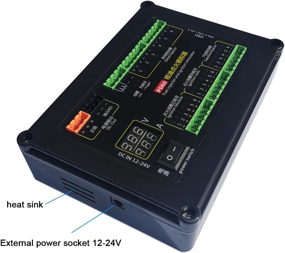 PD60 Fuel Injection Ignition Simulator is a very comprehensive for ing and testing car computers. It can not only simulate gasoline and derv fuel injectors, but also simulate ignition coils, which is very suitable for car computer ing and testing. It is a very practical car computer ing and testing , greatly improving car ing shops' efficiency. Ignition Coil Simulation Function: ports positive trigger ignition coil simulation and negative trigger ignition coil simulation. Display Function: Built-in real-time display computer module, with voltmeter and ammeter function, real-time monitor the vole and current during the fuel injection and ignition process in real time, helping the er to determine the problem more accurately. Rich Functions: With over-current ing circuit, with on-board diagnostics socket, with high-power resistor (for fuel metering valves simulation), with 120Ω terminal resistor. With CAN Data Acquisition Socket: PD60 is equipped with a CAN analyzer socket and connection cable, which can conveniently acquire, analyze, store and playback CAN bus data (telegrams), which is very convenient to use. Note: This product does not include a signal generator and cannot simulate sensor signals. Specifications: Name: Ignition Simulator Material: plastics+metal Item size: 180 * 130 * 45.5mm / 7.09 * 5.12 * 1.79in Package size: 250 * 200 * 150mm / 9.84 * 7.87 * 5.91in Package weight: 500g / 1.10lb Packing List: 1 * Ignition Simulator 1 * Power Cable 1 * High Power Resistance 1 * CAN Cable 3 * Computer Connection Cable 1 * Flat Cable 9 * Wiring Plugs