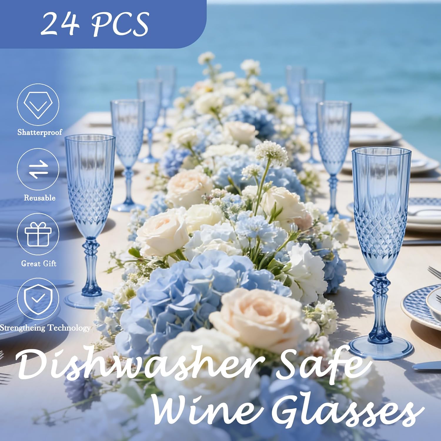 | Included Components | 24 pack blue champagne glasses |