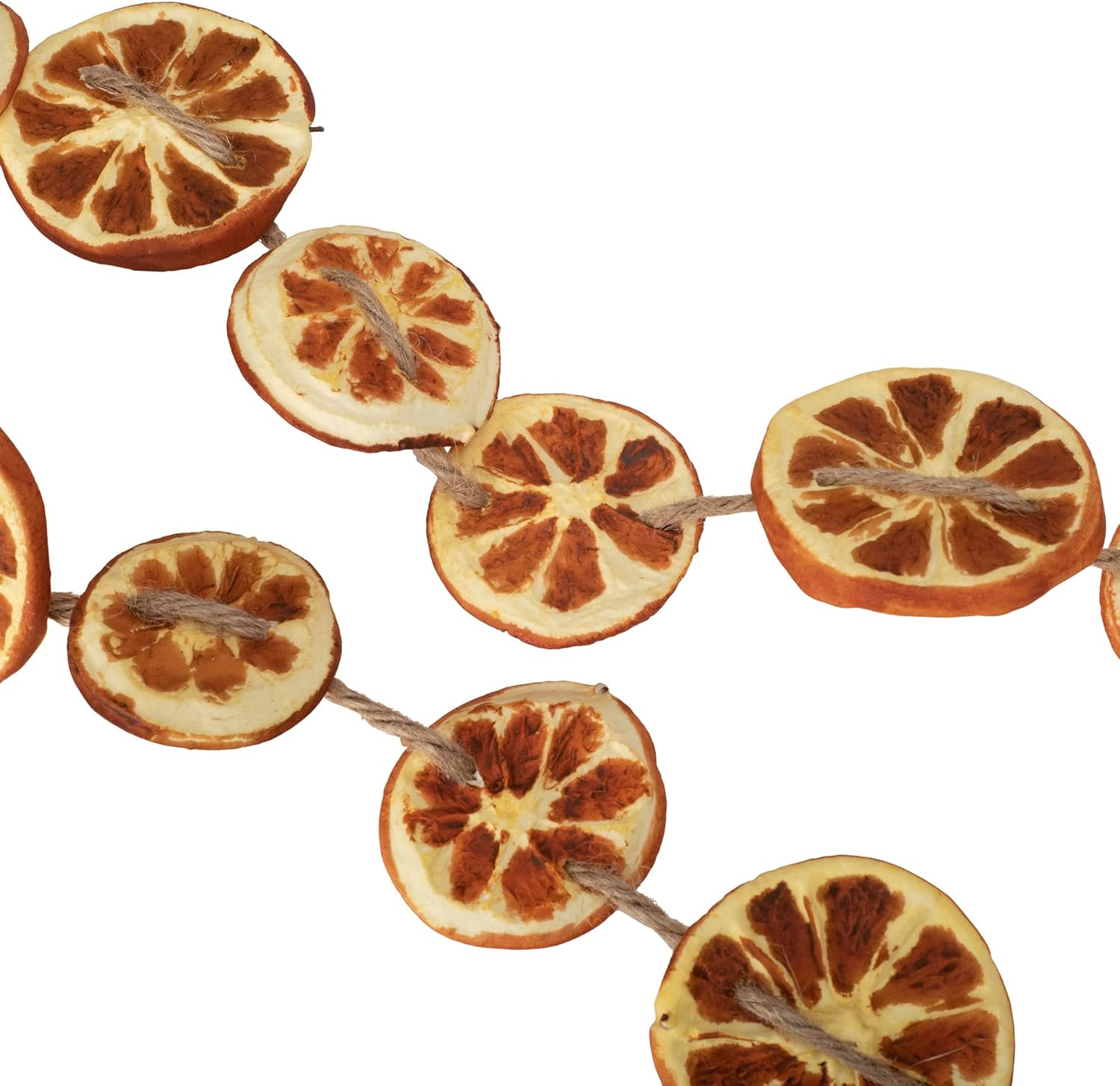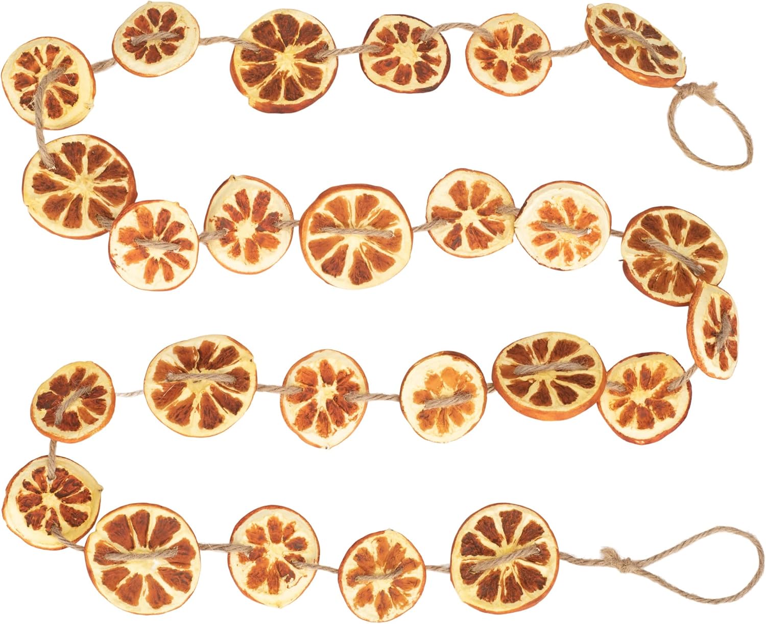 Embrace the charm of the season with the RAZ Imports Orange Slice Garland. Measuring 5.5 feet long, this rustic holiday decoration brings together dried orange slices, faux greenery, and a farmhouse-inspired design to elevate any space.Whether you're decorating your fireplace mantel, dining table, or front entryway, this versatile garland adds a warm, nostalgic touch. The lifelike details make it a standout piece for Thanksgiving, Christmas, or everyday seasonal decor.Durable and lightweight, it’s easy to display and perfect for homes styled with vintage, primitive, or cozy rustic elements. Unbox it and enjoy — no setup required.Great as a thoughtful holiday gift or to enhance your own festive atmosphere.