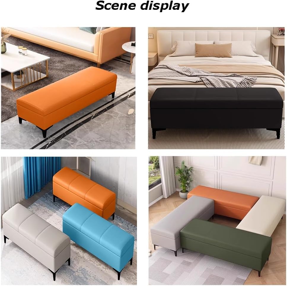Plush yet practical, this tufted storage bench provides a variety of home décor options. Use it as a coffee table ottoman in a living room to serve guests. Position it in a family room to relax feet on after a long day. Place it as an end of bed bench to hold pillows and blankets. this large tufted storage bench is a premium addition for any home. Easy to assemble and maintain.Product Specifications:Product Name: Storage stoolColor: Gray 1 , Gray 2 , Gray 3 , White 1 , White 2 , Dark BrownMaterial:Nappa leather + solid wood frameProduct Size: (40x40x45cm,50x40x45cm,60x40x45cm,70x40x45cm,80x40x45cm,90x40x45cm,100x40x45cm,110x40x45cm,120x40x45cm )Maximum load capacity: 150kg/330ibStyle: Modern minimalistMulti-Purpose Design: Ideal for living rooms, bedrooms, or offices, serving as seating, movable coffee table and storage.Applicable Scenarios: Can be used as a shoe changing stool, makeup stool, dressing stool, living room leisure stool, sofa stool, and coffee table stool. Sturdy and durable enough to hold toys, books, and other items.Package Contents:1 x Storage OttomanNotes:1.You'll need to install the stool legs yourself!.2.The dimensions are measured manually and may have an error of 2-3cm. Please refer to the actual product.3.Product images may differ slightly in color from the actual product due to lighting conditions during photography,The actual product shall prevail.
