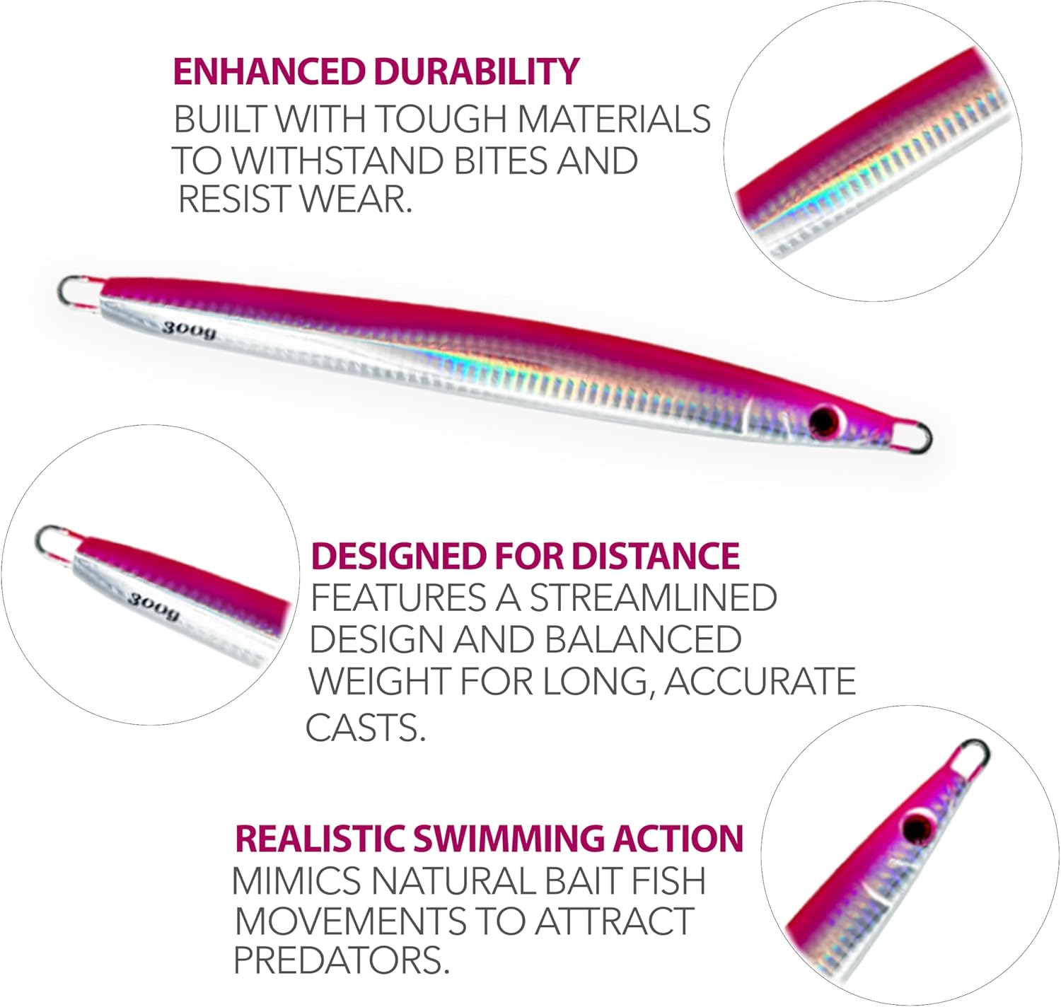 The 300g Sniper Knife Jigs (3 Pieces) are premium saltwater fishing lures designed for exceptional performance in both saltwater and ice fishing conditions. Perfect for targeting tuna, bass, blackfish, and other saltwater species, these knife jigs offer versatility with dual rigging options: single assist hooks on top or twin assist hooks on the bottom. Whether you're using vertical jigs for deep waters or slow pitch jigs for a more subtle approach, the jigs' side-to-side swimming action ensures high attraction, making them ideal for tuna jigs saltwater fishing, slow pitch jig applications, and even ice fishing jigs. Built from durable materials, these saltwater jigs are designed to withstand harsh conditions, offering long-lasting performance for your jigging lures collection. This 3-piece set of Sniper Knife Jigs is a must-have addition to your fishing jig bag saltwater, making it the perfect choice for jigs fishing lures, jig hooks, and saltwater jig heads. Experience top-tier fishing success with the Colt Sniper lure series, and elevate your fishing game with these versatile, reliable tuna jigs.