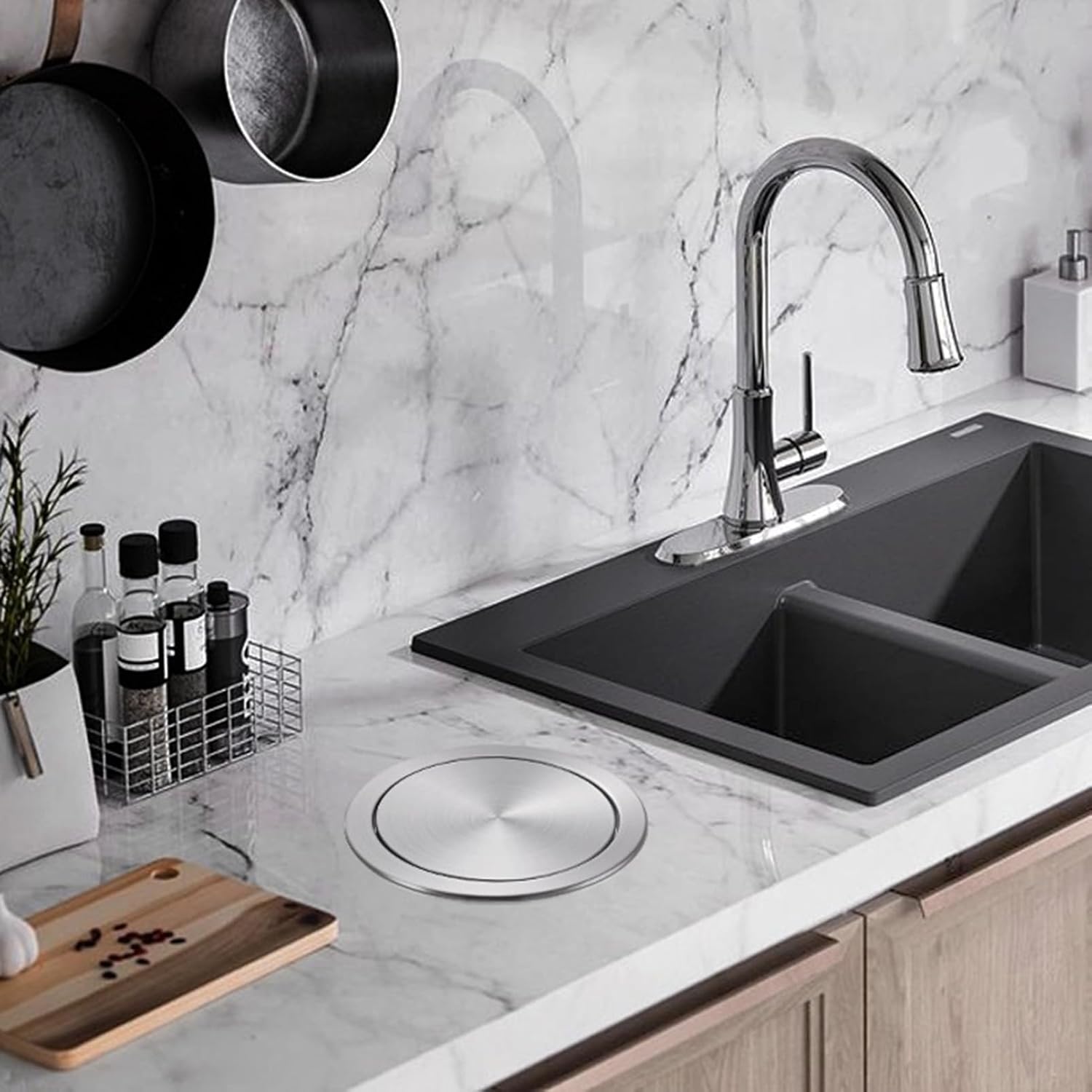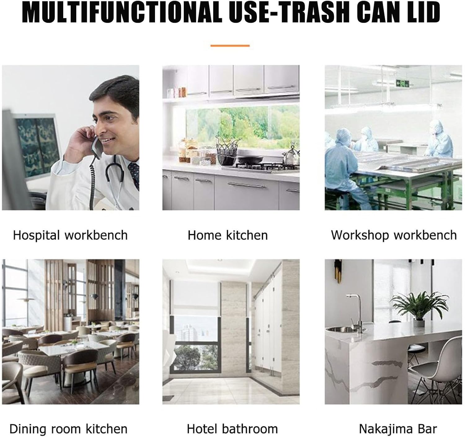 garbage can Trash can Recessed Countertop Flap Lid Trash Bin Balance Cover, Built-in Stainless Steel Trash Grommet, Recessed Trash Can Lid, Waste Chute Cover for Kitchen Bathroom Office With its efficient design and practical functions, this countertop embedded trash can lid is an important supplement to any public or private toilet, providing user-friendly features to keep your kitchen, restaurant, convenience store or catering service clean and elegant. SPECIFICATION: Product name: Waste Chute Lid Material: stainless steel Lid size: diameter 25cm (9.84 inches) Installation method: countertop embedded FEATURES: · Stainless steel material, highly wear-resistant and rust-proof, maintaining a bright and clean professional appearance; · Built-in design, seamless and tight fit, saving space; · Flexible trash can is flipped over, and the cover is automatically closed after the garbage is discarded; · Very suitable for hiding trash cans, simplifying the viewing angle, and looking fashionable; · Please note that it needs to be used with a trash can.