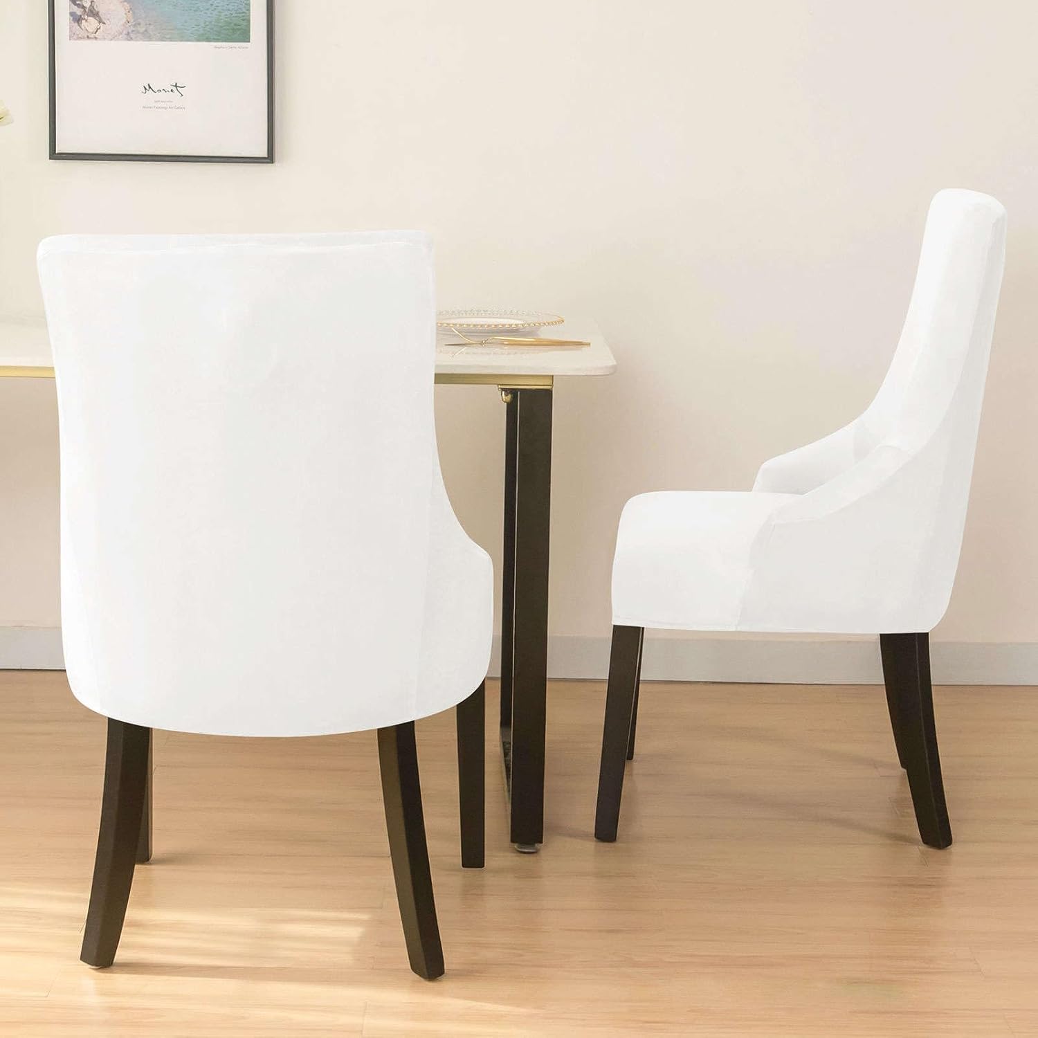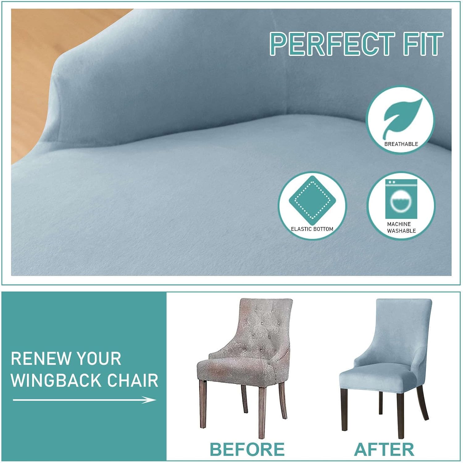 armless wingback chair cover is made of soft velvet, , breathable and comfort. Designed with high elasticity to perfectly fits most wingback chairs.FeaturesSuper stretch-stretch that recovers quickly, 360° Perfect Fit chair. dining chair covers save you money by extending the life of your chair. wing chair slipcovers will protect your armchair from spills, stains, dirt, grime, scratch, wear and tear, great for homes with kids and pets.Easy to put on and off, armrest covers feature for better staying in place, simple to tuck the on your chair to get a refresh visual effect.Suitable For Chair Sizeseat length: 44-52 cm (17-20 in)seat width: 48-58 cm (19-23 in)back height: 46-52 cm (18-20 in)back width: 44-52 cm (17-20 in)seat thick: 6-12 cm (2-5 in)Please measure your chair before buying, thank you.Note1.Due to the difference in light and screen, the color of the product may be slightly different from the picture.2.Please measure your chair before purchase! Please allow 1-2cm differences due to manual measurement. Please select the appropriate size chair cover according to the size chart we provide.